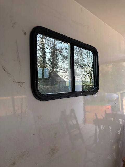 Yesterday afternoon therefore found us ready and keen to install window three. Aside from an argument with the hedge who likes to get up close and personal with you when working alongside Hetty, the installation went well and we finished pretty quickly. We then spent some time clearing up ready to think about the next challenge. I did make the mistake of climbing up into the bed area to realise it was going to be quite challenging to get down.