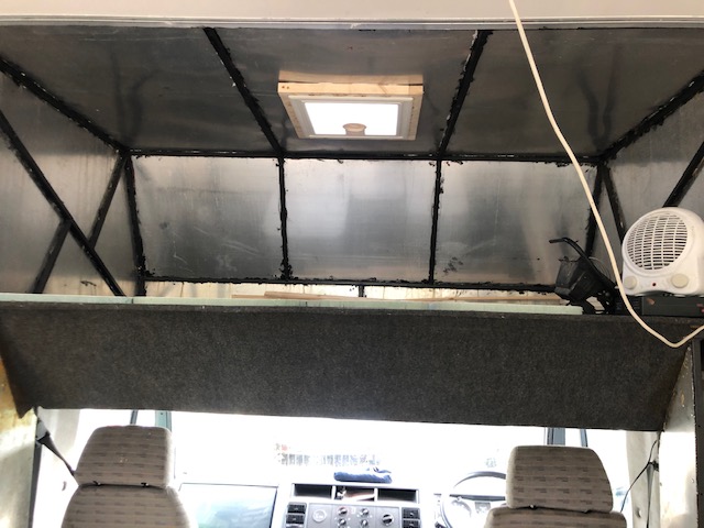 Shortly after I started digging, my assistance was needed to fit fan two in hole two. So it was off with the gardening gloves as they didn’t match my GA attire and back over to Hetty. Fan two is above the sleeping area in the cab bringing much needed light to that end of Hetty. Everything seemed to go well with the second fan fitting. After making sure they were both as sealed as they possibly could be, we tidied up and called it a day.